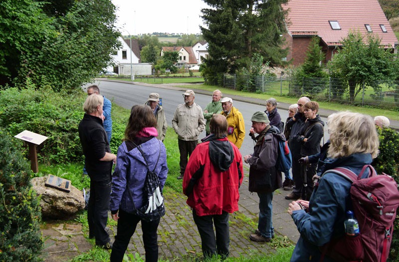 Am Treffpunkt Waldkindergarten begrüßte der 1. Vorsitzende Prof. Wichert die Gruppe und bedankte sich für ihr Interesse. In der Hand hielt er eine schwere Hacke mit eindeutigen Gebrauchsspuren. „Diese Hacke hat mir bei meiner Arbeit in den fast 50 Jahren gute Dienste geleistet, nun gebe ich sie an meinen Nachfolger weiter“, sagte Prof. Wichert. Tage zuvor hatte er sein Amt als Beauftragter der Gemeinde Altenbeken für Bau- u. Bodendenkmäler an Michael Bieling übergeben, der sich für das Gerät herzlich bedankte.
