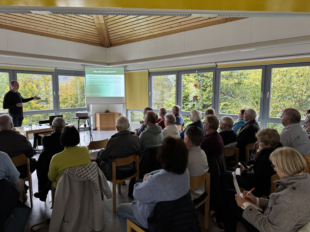 Der Vortrag verdeutlichte zugleich die Chancen und Grenzen genealogischer Forschung. So helfen Ortsfamilienbücher, familiäre Zusammenhänge schnell zu erkennen, ersetzen jedoch nicht die Sichtung der Originalquellen. Bewermeier betonte, dass die digitale Sammlung in erster Linie ein Hilfsmittel sei, das weiterführende Recherchen erleichtert.