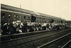Abbildung 1: Am Abfahrtsgleis des Zuges nach Riga ist der Bielefelder Hauptbahnhof überfüllt. Auch die aus Altenbeken deportierten Mitglieder der Familie Ikenberg mussten sich hier zwischen Jüdinnen und Juden aus Münster und dem Münsterland einen Platz in den überfüllten Waggons suchen (Foto: Stadtarchiv Bielefeld).